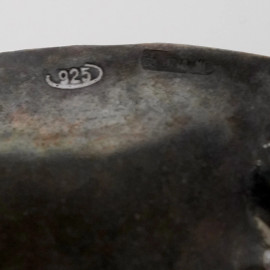 Centrotavola a guisa di foglia di vite in argento 925/000, cm 12x29x19, gr. 465