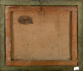 Chiesa con Vesuvio sullo sfondo, XIX secolo, olio su tela, cm 63x76, entro cornice, (difetti)