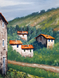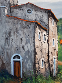 Chiesetta d’Abruzzo, olio su tela, cm 70x50, firmato, reca al retro certificazione di autenticità e di provenienza e dichiarazione di autenticità dell’Artista