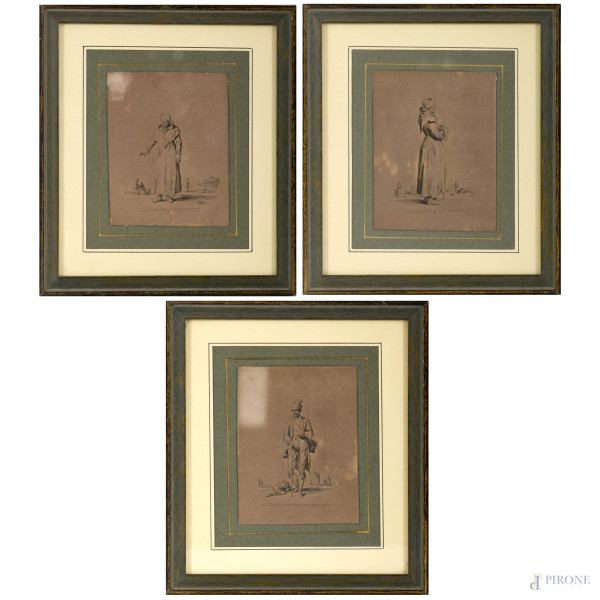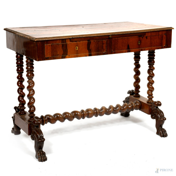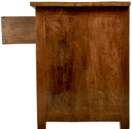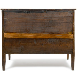 Comò Luigi XVI in noce con tre cassetti al fronte, XIX secolo, cm 95x110x56 (difetti)