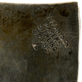 Coppia di centrini in argento a foggia di foglia, Tiffany, XX secolo, cm 3x15x10,5, peso totale gr. 230