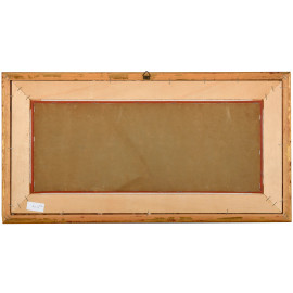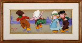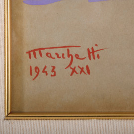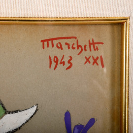 Coppia di dipinti raffiguranti fanciulli, tempera su carta, firmati e datati "Marchetti 1943", cm 19x49,5, entro cornice