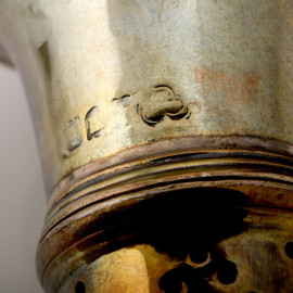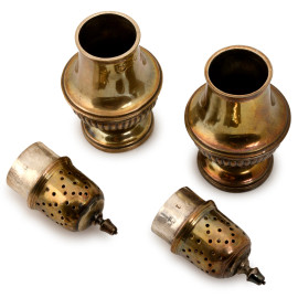 Coppia di sale e pepe in argento appesantito, XIX-XX secolo, Inghilterra, altezza cm 10, peso lordo totale gr. 90