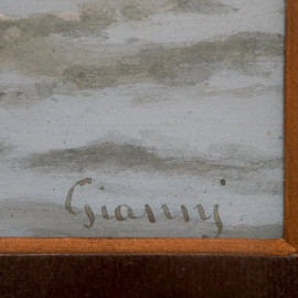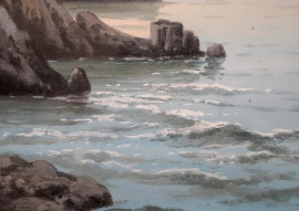 Coppia di vedute di Capri e dei suoi Faraglioni, tempera su carta, cm 29,5x16 entro cornice, XX secolo, (difetti)
