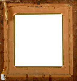 Cornice impero in legno intagliato e dorato, cm 80,5X76, battente cm 64X60, (difetti)
