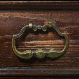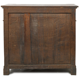 Credenza in noce a due sportelli sormontati da un cassetto con duplice maniglia, laterali a profili di colonnine a tortiglione, XIX secolo, cm 108,5x116x58,5, (difetti)