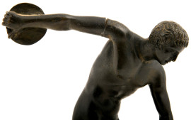 Discobolo, scultura in bronzo, XX secolo, altezza cm 23, (rotture e difetti)