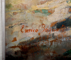Enrica Bagnati (1884-1968), Il giogo, olio su compensato, firmato in basso a sinistra, cm 50x67, entro cornice, (difetti)