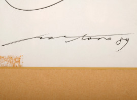 Figure accovacciate, china su carta, XX secolo, cm 29x40, entro cornice, (difetti)