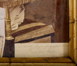 Foto ritoccata a mano ritraente Papa Pio IX, datata "24 Apr. 1877", cm 33x25, entro cornice, (difetti)
