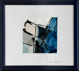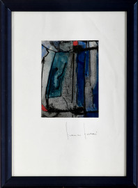 Franco Ferrari (1929-2000), lotto composto da due composizioni a tecnica mista su carta, firmate, cm 24x27 compreso passepartout, entro cornice
