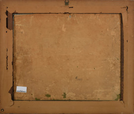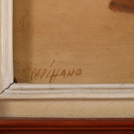 Fuga in Egitto, olio su tavola, XX secolo, cm 48,5x60 entro cornice (difetti)