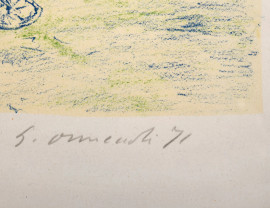 Giovanni Omiccioli (Roma, 25 febbraio 1901 – Roma, 1 marzo 1975), Prova d'artista XIII/XX, litografia a colori, cm 49x69, firmata, dedicata e datata "71", entro cornice