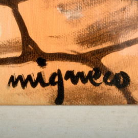 Giuseppe Migneco (Messina, 9 febbraio 1903 – Milano, 28 febbraio 1997), Figura d'uomo, olio su tela, cm 50x41, firmato in basso a destra, sul retro firmato dall'artista per autentica, entro cornice