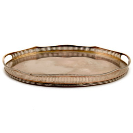 Grande vassoio in metallo argentato di forma ovale, cm 50x38