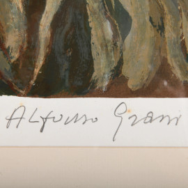 Il libro mastro, litografia su carta, esemplare II°, firmato in basso a destra, cm 69x86 compreso passepartout