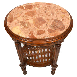 Gueridon in noce con piano in marmo, XX secolo, cm 65x45x35, (difetti)