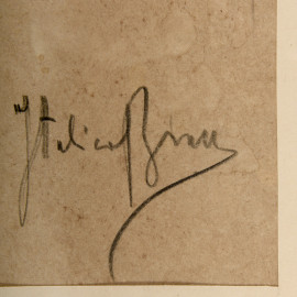Italico Brass (Gorizia, 1870 – Venezia, 1943), Ritratto di uomo con cappello di profilo, grafite su carta, cm 21x15 entro cornice, firmato in basso a destra (difetti)