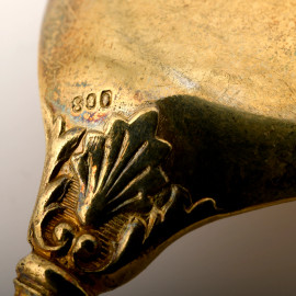 Lotto composto da 10 cucchiaini (cm 10,5) e da un cucchiaio (cm 19,5) in argento vermeil, peso totale gr. 150