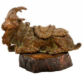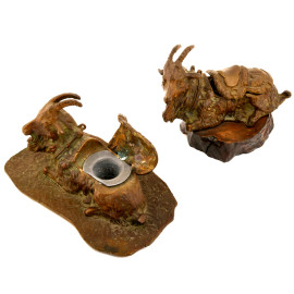 Lotto composto da 2 calamai bronzei a foggia di caproni, XX secolo, misure massime 10x17x10,5, (difetti)