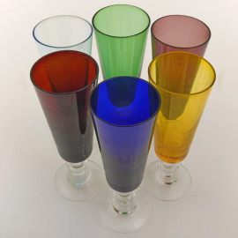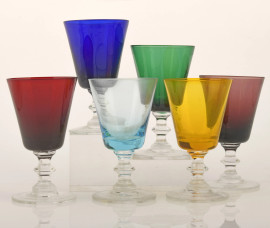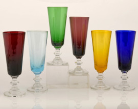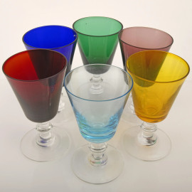 Lotto composto da 24 calici in vetro di vari colori, XX secolo, altezza cm 17,5, (difetti)