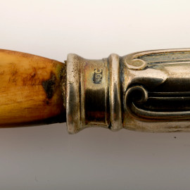 Lotto composto da forchetta e cucchiaio in argento e osso, XX secolo, misure massime cm 26, peso lordo totale gr. 120