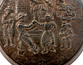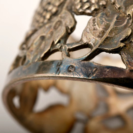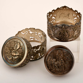 Lotto composto da una teiera e 2 copribottiglie in metallo argentato cesellato e sbalzato, XX secolo, misure massime cm 12x17, (difetti)