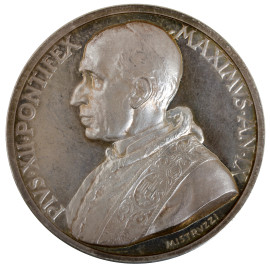 Lotto di 17 medaglie in argento annuali e straordinarie di papa Pio XII, anni II, III, IV, V, VI, VIII, IX, X, XI, XIII, XIV, XV, XVI, XVII, XVIII, XIX, XX, diametro cm 4,5, peso totale gr. 620, (difetti)
