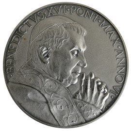 Lotto di 2 medaglie pontificie in argento (peso totale gr. 80), 2 in bronzo e una serie vaticana di monetazione in euro, (difetti)