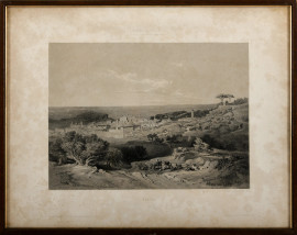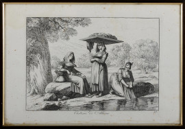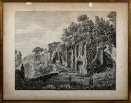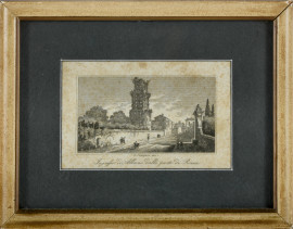 Lotto di 23 stampe raffiguranti luoghi di Roma e albano, XIX secolo, misure massime cm 52x67, entro cornice, (difetti)