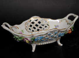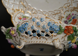 Lotto di due centrini in porcellana, misura massima cm 7x23, (difetti)