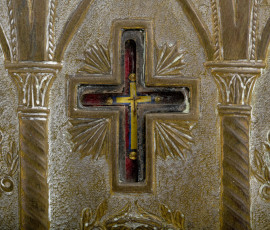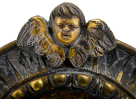 Lotto di due cornici in metallo con ex voto, XX secolo, misure massime, cm 26x20, (difetti)