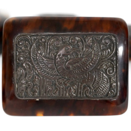Lotto di otto cofanetti in bachelite con inserti in argento, misura massima cm 2,5x5x7, (difetti)