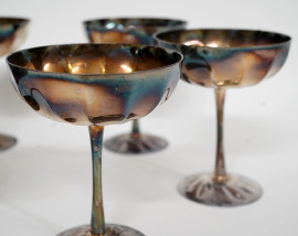 Lotto di sei coppette in metallo argentato, altezza cm 13,5