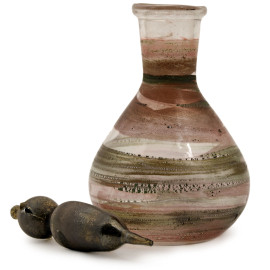 Lotto di tre ampolline in vetro soffiato, Murano, XX secolo, altezza massima cm 11, (difetti)