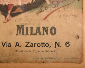 Manifesto pubblicitario Fernet Princeps Luigi Cusatelli, primo XX secolo, cm 38,5x24, entro cornice, (supporto rifilato, difetti)