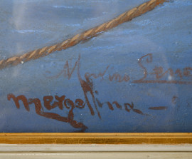 Mergellina, tecnica mista su cartoncino, cm 38x85 entro cornice, firmato in basso a sinistra