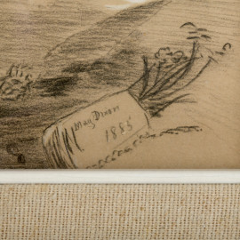 Mulini a vento, 1885, grafite su carta, cm 38x32 entro cornice, firmato in basso a destra "May Dixon 1883" (difetti)