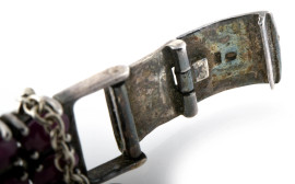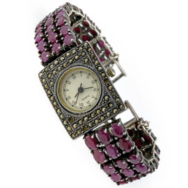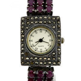 Orologio Quarz in argento e radici di rubino, misure cassa cm 2,3x2,9, lunghezza cm 19, peso gr 56,5