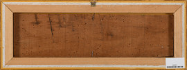 Paesaggio agreste con figure, olio su tavola, XX secolo, cm 13x48,5 entro cornice, (difetti)