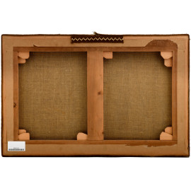 Paesaggio con ponte e figure, olio su tela, XIX secolo, cm 40x62, firmato in basso a destra