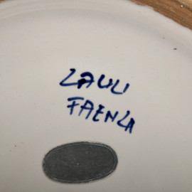 Piatto in maiolica policroma, cavetto decorato con un pavone e tesa a motivi floreali, Faenza, XX secolo, diametro cm 31 (difetti)