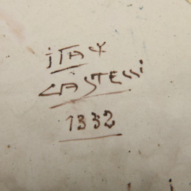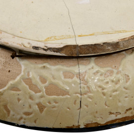 Piatto istoriato con il rapimento di Elena, Manifattura Castelli, XX secolo, diametro cm 36, (difetti di cottura, sbeccature e caduta di smalto stannifero)