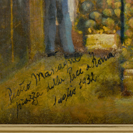 Pietro Mascagni, Piazza della Pace a Roma, olio su tela, cm 43,5x36,5, firmato, titolato e datato "1932" in basso a sinistra, entro cornice
