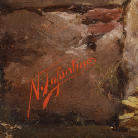 Pittore di vasellame, XIX-XX secolo, olio su tela, cm 46x31, firmato in basso a sinistra, (difetti)