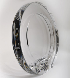 Portafoto in cristallo Rosenthal a marchio Bulgari, cm 17x17,5x6; luce diametro cm 12, (difetti)