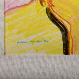 Remo Brindisi (Roma, 1918 – Lido di Spina, 1996), Pastorale, tecnica mista su carta, firmato in basso sinistra "Brindisi", misure comprese passepartout cm 48,5x38, entro cornice
