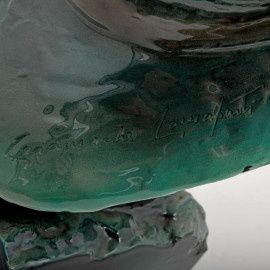 Scultura in ceramica Cacciapuoti raffigurante pescatore, firmato "Ceramiche Cacciapuoti" e "A. Ferreri", cm 37x20x16, (difetti)
