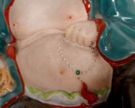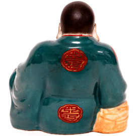 Scultura in porcellana smaltata raffigurante Buddha, XX secolo, cm 20x17x11, (difetti)