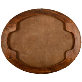 Scuola cremonese della fine del XVIII secolo, Natura morta con mappamondo, mandolini e tromba, olio su tela ovale, cm 79x97,5, (difetti)